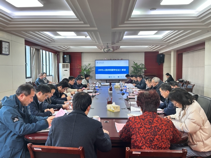 為進一步提升高等教育學位管理水平,12月31日下午,校學位評定委員會召開會議,集體學習《中華人民共和國學位法》。會議由校長、校學位評定委員會主席任永主持。