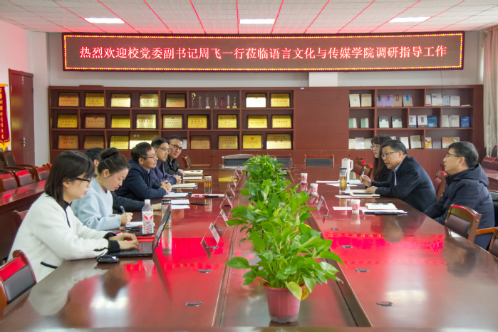 3月13日上午,黨委副書記周飛赴語言文化與傳媒學院走訪調(diào)研,與學院領導班子成員和教師代表座談交流,深入了解學院發(fā)展情況,指導學院高質(zhì)量發(fā)展。