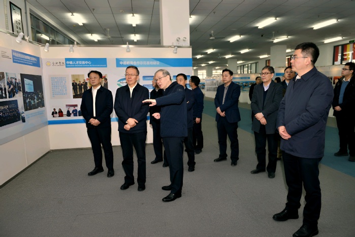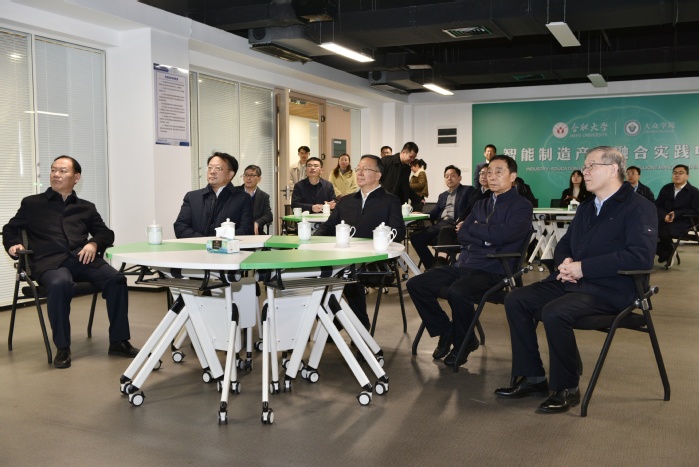 調(diào)研組參觀了中德合作共建合肥大學(xué)展,詳細了解了學(xué)校建校歷史、應(yīng)用型人才培養(yǎng)模式改革、國際交流合作、產(chǎn)教融合等情況,充分肯定了學(xué)校的辦學(xué)定位及應(yīng)用型人才培養(yǎng)成果。在安徽省現(xiàn)代電子控制與檢測應(yīng)用技術(shù)協(xié)同創(chuàng)新中心,調(diào)研組深入了解中心在科技創(chuàng)新、成果轉(zhuǎn)化等方面的情況。在大眾學(xué)院,黨委委員、副校長王曉峰匯報了大眾學(xué)院建設(shè)發(fā)展情況,調(diào)研組鼓勵學(xué)院創(chuàng)新發(fā)展思路,加強校企協(xié)同育人,切實提升服務(wù)地方經(jīng)濟社會發(fā)展的能力和水平。