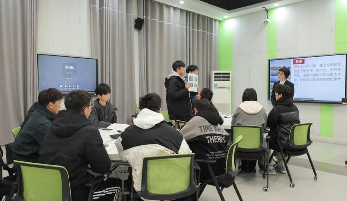 面對百科全書式的知識體系和超百人的大班教學環境,胡彩林從2022年課程一開始就探索實施線上線下混合式教學,通過雨課堂等智慧教學手段進行課前問卷調查、課中討論互動、課后拓展思考,讓學生“忙起來”,實現“線上線下混合”“課內課外聯動”有機融合,用數字化技術激活思政課新生態。一方面,通過構建師生線上線下混合式學習共同體,轉變靜態灌輸式學習模式,創建動態引導式學習體系,引導活躍度不高、參與感不強的學生積極參與課堂。另一方面,課內理論講授與課堂研討式教學、課外實踐教學三者并重,學生由被動聽講變主動輸出。