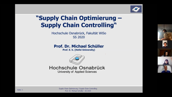 Am Montag, dem 9. M?rz, um 7.50 Uhr (MESZ) bzw. 14.50 Uhr (Pekinger Zeit) er?ffneten die Studenten der Abteilung für Wirtschaft and Management am Tisch zu Hause aufgeregt die Videokommunikationsplattform Zoom und betraten den Online-Unterrichtsraum, der von den chinesischen Lehrern organisiert wurde. Zu dieser Zeit betrat Prof. Dr. Michael Schüller, Leiter des LOGinCHINA-Programms, der sich in der mehr als 10.000 Kilometer von Hefei entfernten deutschen Stadt Osnabrück befindet, den Raum auch. Nachdem er die Unterrichtsmaterialien auf die Plattform hochgeladen und die Live-übertragung getestet hatte, begann das Sommersemester im Jahr 2020 von dem Studienjahrgang 2017 der Abteilung für Wirtschaft and Management online pünktlich.