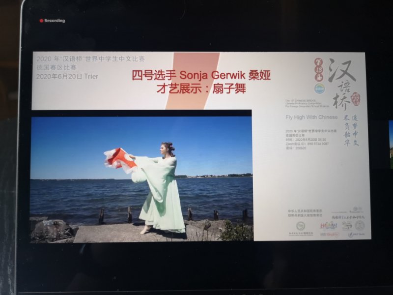 Am 20. Juni deutscher Zeit endete das Deutschlandfinale des 13. Chinesisch-Wettbewerbs Chinese Bridge für Schülerinnen und Schüler im Jahr 2020, das von der chinesischen Botschaft in Deutschland und vom Konfuzius-Institut der Universit?t Trier veranstaltet wurde. Betroffen von der Corona-Epidemie fand dieser Wettbewerb erstmals digital in Form einer Videokonferenz statt. 13 Schülerinnen und Schüler aus verschiedenen St?dten Deutschlands zeigten ihre Liebe zur chinesischen Kultur durch Reden auf Chinesisch, Quiz- und Talentshows zum Thema Chase Chinese Dream, Live Your Youth.