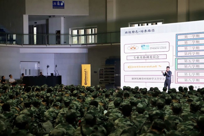 Die Veranstaltung stand allen Studienanf?ngern des Jahrgangs 2020 in Natur- und Ingenieurwissenschaften offen. W?hrend der milit?rischen Ausbildung sahen sich die Erstsemester das Video an, in dem die Unternehmenskultur des Continental-Konzerns und das Projekt der Conti-Klasse sorgf?ltig vorgestellt wurden. Danach betrat Zhang Guangzhou, Projektleiter für die Conti-Klasse, die Bühne, um den spezifischen Inhalt des Projekts vorzustellen.
