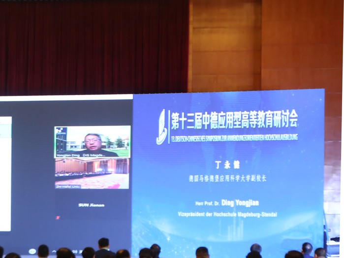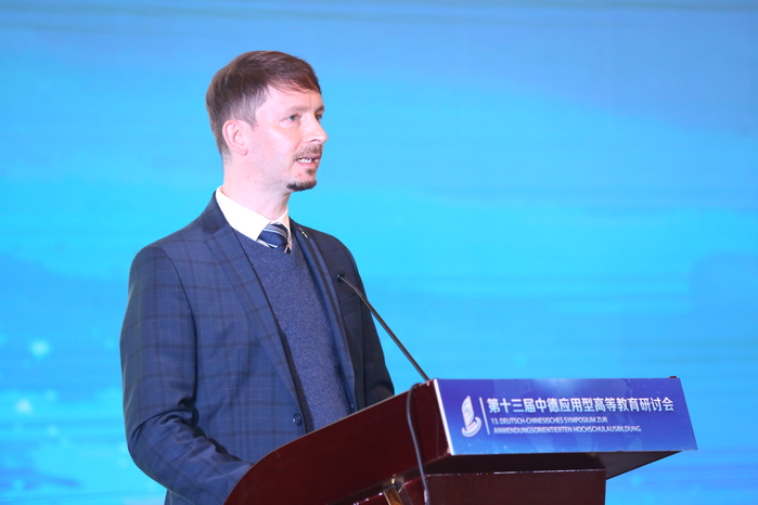 Nach der Er?ffnungszeremonie teilten fünf Experten in der Grundsatzrede des Treffens ihre Gedanken zur anwendungsorientierten Hochschulbildung auf der Grundlage ihrer eigenen Forschungsbereiche mit. Ding Yongjian, Vizepr?sident der Fachhochschule Magdeburg, stellte die ?Perspektiven der chinesisch-deutschen Hochschulzusammenarbeit in der neuen Situation und die Rolle der deutschen Fachhochschulen“ vor. Er sagte, dass die internationalen Beziehungen in hohem Ma?e von der wirtschaftlichen Zusammenarbeit abh?ngen. China und Deutschland haben eine facettenreiche und feldübergreifende Zusammenarbeit im wirtschaftlichen Bereich, die auch eine solide Grundlage für die chinesisch-deutsche Zusammenarbeit im Hochschulbereich bildet. In Zukunft werden die Zusammenarbeit und der Austausch zwischen chinesischen und deutschen Universit?ten fortgesetzt und vertieft, um die Entwicklung und den Fortschritt der chinesischen und deutschen Bildung sowie die Win-Win-Zusammenarbeit gemeinsam zu f?rdern.
