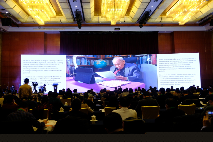 Professor Guo Jianru von der Peking Universit?t gab eine beeindruckende Erl?uterung zum Thema ?Integration von Produktion und Bildung und Ausbildung anwendungsorientierter Fachkr?fte auf der Grundlage der Analyse nationaler Umfragedaten“.