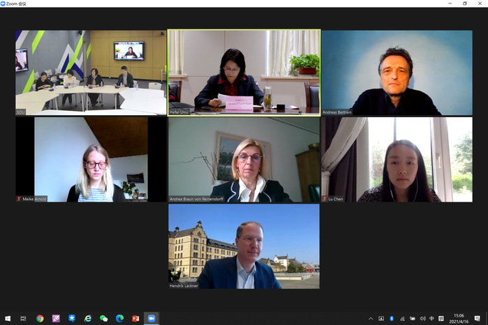 Frau Prof. Dr. Wu Chunmei beglückwünschte zun?chst die drei Parteien zur erfolgreichen Durchführung der Online-Videokonferenz. Sie wies darauf hin, dass das Chinesisch-Deutsche Dialogforum eine Kommunikationsplattform sei, die von der chinesischen und der deutschen Regierung gemeinsam aufgebaut wurde, und dass die heutige Videokonferenz dazu diene, den Konsens des Chinesisch-Deutschen Dialogforums umzusetzen, bei dem die drei Parteien beabsichtigen, gemeinsam die Chinese-German OOC (C-G-OOC) aufzubauen, um die gemeinsame Verleihung chinesischer und deutscher Abschlüsse, die Ausbildung von Hochschullehrkr?ften und die Integration von Online- und Offline-Ausbildung im dualen System zu realisieren.
