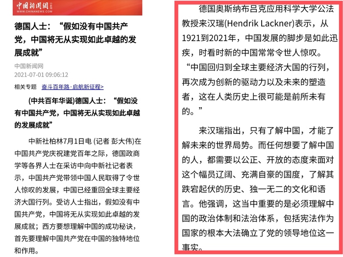 ?Ich gratuliere der Kommunistischen Partei Chinas herzlich zum 100. Jahrestag und wünsche Ihnen noch gr??eren Erfolge!“. Zum 100. Jahrestag der Gründung der Kommunistischen Partei Chinas sprachen der deutsche Experte der Universit?t Hefei, Gewinner des Freundschaftspreises der chinesischen Regierung, und auch Pr?sident des Konfuzius-Instituts in Stralsund, Professor Falk H?hn, der Gewinner des Huangshan-Freundschaftspreises der Volksregierung der Provinz Anhui, und auch Professor an der Hochschule Osnabrück, Michael Schüller, und Lai Hanrui ihre Wünsche aufrichtig aus.