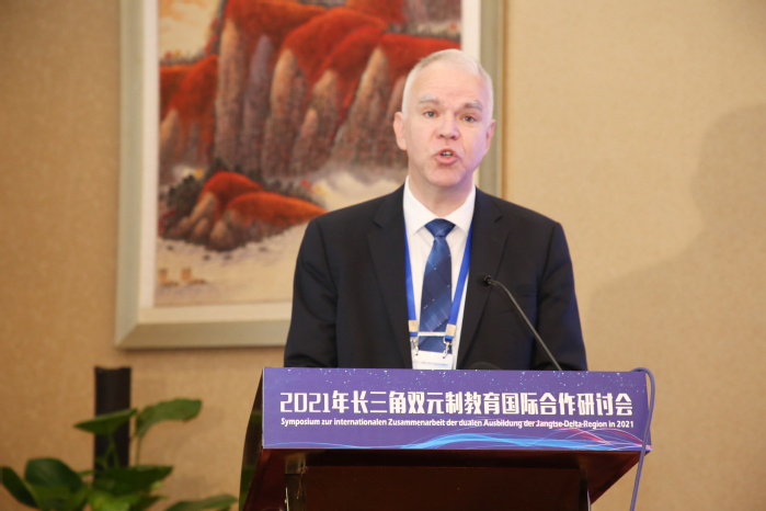In seinem Bericht mit dem Titel Entwicklung - Kooperation - Innovation Vergangenheit, Gegenwart und Zukunft stellte Georg Stadler fest, dass Hochschulen und Universit?ten ein zentraler Bestandteil der Bildung sind und die berufliche Bildung den Weg zur Innovation weist. Die chinesisch-deutsche Zusammenarbeit hat eine lange Geschichte. Er hofft, gute Kommunikation und Zusammenarbeit mit mehr Hochschulen und Universit?ten zu etablieren, das duale Ausbildungsmodell zu nutzen, die Reform und Innovation von Ausbildungsprogrammen zu f?rdern, damit sich die umfassenden Kompetenzen und beruflichen F?higkeiten der Studierenden weiter verbessern, so dass mehr Berufsschulen in China davon profitieren.