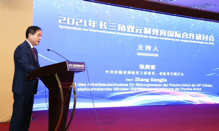 Am Morgen des 6. Juli fand in Hefei das Symposium zur internationalen Zusammenarbeit der dualen Ausbildung der Jangtse-Delta-Region statt, das vom Ministerum für Bildungswesen der Provinz Anhui gesponsert und von der Universit?t Hefei veranstaltet wurde. Mehr als 190 Vertreterinnen und Vertreter von 79 Hochschulen und Unternehmen nahmen an der Konferenz teil, um über Erfahrungen zur internationalen Zusammenarbeit in der dualen Ausbildung zu diskutieren und sich auszutauschen. Die Er?ffnungszeremonie wurde von Zhang Gengjia geleitet, einem Mitglied des Bildungs- und Industrieausschusses des Provinzkomitees der Kommunistischen Partei Chinas in Anhui und stellvertretender Direktor des Ministerums für Bildungswesen der Provinz Anhui.