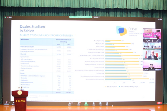 Prof. Dr.-Ing. Wolfgang Arens-Fischer, Institutsleiter und Studiendekan für Duale Studieng?nge an der Hochschule Osnabrück, machte ?Duales Studium in Deutschland und an der Hochschule Osnabrück“ zum Gegenstand seiner Rede, in der er die Entwicklungsgeschichte und momentane Lage des dualen Systems an angewandten Hochschulen Deutschlands erl?uterte. Er pr?sentierte das duale System als flexibel und praxisbezogen, weil dieses System es den Studierenden erm?glichen k?nne, neben theoretischen Kenntnissen mehr praxisorientierte Erfahrungen zu erwerben. Nach 10-j?hrigen Bemühungen von beiden Seiten seien immer mehr Studierende nach dem dualen System ausgebildet worden. Das Unterrichtsdesign sei vielf?ltig und das Bildungssystem sei besser geworden, insbesondere im Fachbereich von Ingenieurwissenschaft, Elektrotechnik und Computertechnik.