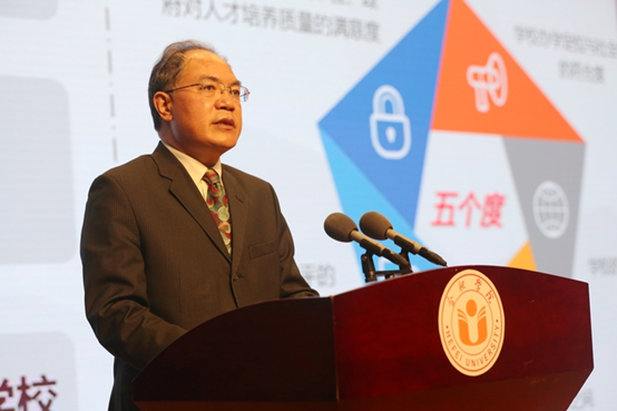 In Bezug auf Hauptthemen hielt Herr Zhao Zhenhua als Minister des Bildungsministeriums der Provinz Anhui eine Rede mit dem Titel ?Rückblick und Aussichten für die Hochschulausbildung anwendungsorientierter Fachkr?fte“, in der er die Provinz Anhui als Vorbild für den Aufbau angewandter Hochschulen bezeichnete bezüglich der allersten theoretischen und praktischen Bemühungen, der Verst?rkung des Strukturdesigns, der Verdeutlichung der Entwicklungslinie, der Vervollst?ndigung des Bewertungssystems und des Aufbaus der Entwicklungslage bei der angewandten Hochschulbildung. In seinem n?chsten Entwicklungsplan wies er darauf hin, dass die Provinz Anhui die geistigen Anleitungen vom Staatspr?sidenten Xi Jinping weiterhin umsetzen und die Schlüsselrolle bei der Ausbildung angewandter Fachkr?fte einnehmen solle, indem es zur Weiterleitung, Entwicklung, Realisierung und Garantie mit h?herer Qualit?t an Bildungsposition für F?rderung regionaler wirtschaftlicher und gesellschaftlicher Entwicklung, am Bildungsziel für Ausbildung angewandter Fachkr?fte, an Bildungsmodellen für die Vervollkommnung der Integration zwischen Unternehmen und Hochschulen sowie an Politiksystem für spezielle Unterstützung festhalten werde.