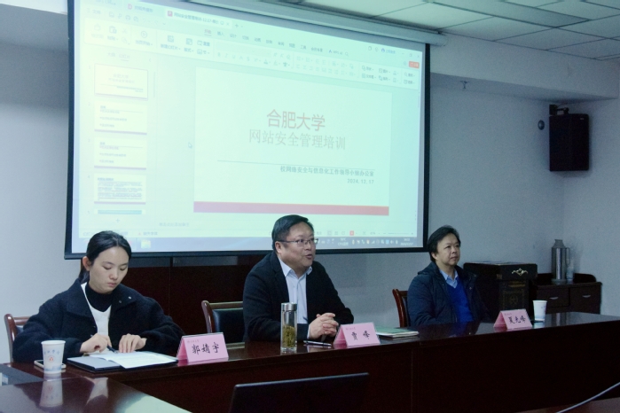 夏光峰深入分析了當前網絡安全和信息發布面臨的風險挑戰,表示要強化網絡安全的人防、物防和技防措施,織牢織密網絡安全防護網,營造安全、健康、文明的校園網絡環境。校園建設與管理處郭婧宇作網絡安全專題培訓,圍繞什么是網絡安全、常見的網絡安全事件、影響網絡安全的因素、網絡安全監測預警與應急處置進行了詳細講解。