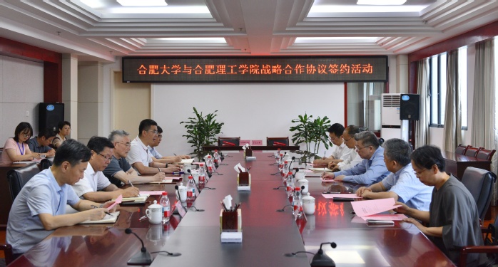 6月21日上午,合肥大學與合肥理工學院戰略合作協議簽約活動在我校行政樓九樓東會議室舉行。合肥市委副書記、合肥理工學院黨委書記路軍,合肥理工學院黨委副書記、院長吳玉程,合肥理工學院黨委副書記、副院長李先強,合肥大學黨委書記鄔平川,合肥大學黨委副書記、校長任永,合肥大學黨委副書記周飛出席活動。簽約活動由鄔平川主持。