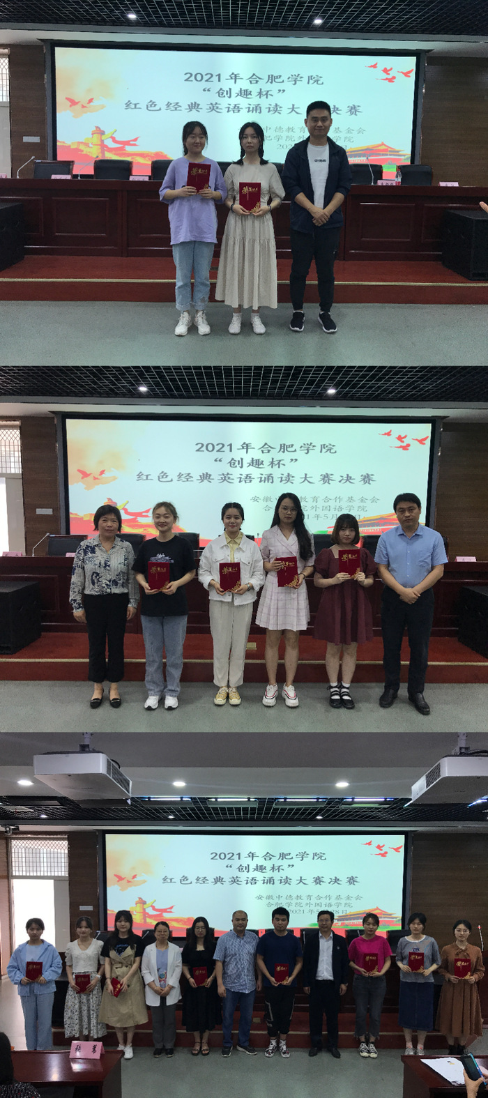 致敬經典,傳承紅色文化。5月28日下午,2021年“創趣杯”——紅色經典英語誦讀大賽在我校一期六棟一樓報告廳舉行。合肥創趣電子科技有限公司董事長方成俊、副總經理劉從尚,我校外國語學院黨委書記余勇、副院長李潔、副處級組織員周全,學生處副處長、就業指導中心主任張應杰,校團委副書記李妍妍,中德教育合作示范基地(基金)管理辦公室副主任周舟參加大賽。