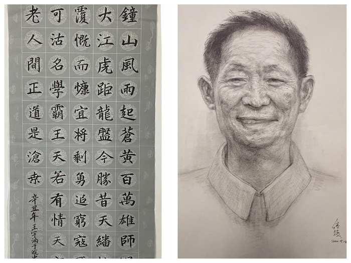 在完成金絲皇菊的包裝設(shè)計和周邊文創(chuàng)產(chǎn)品設(shè)計后,團隊成員還舉辦了主題為“禮贊建黨百年,書畫美麗鄉(xiāng)村”的慶祝建黨100周年書畫和手工作品展。同學們緊扣“農(nóng)業(yè)、農(nóng)村、農(nóng)民”主題,突出建黨100年來我國農(nóng)村翻天覆地的變化?;顒又校蠹覝蕚淞烁魇礁鳂拥墓ぞ?,如超輕粘土、卡紙、膠水等等,充分發(fā)揮專業(yè)特長,在三天時間內(nèi)完成了繪畫、書法、手工作品共60余件,準備近期在萬山鎮(zhèn)文化館展出。