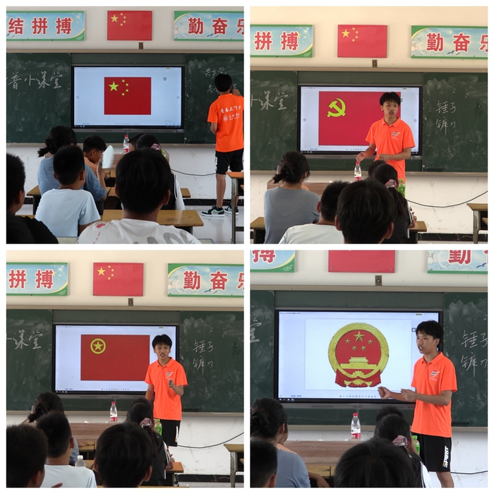 今年是中國共產黨成立100周年,全社會都在學黨史,但是由于教育資源的短缺,陡張村孩子們不像城里的孩子擁有各種電子設備去了解歷史,他們能夠接觸到的或許只有課堂上的點滴。在支教中,隊員向孩子們介紹中國共產黨和中國共青團的先進事跡,讓孩子們更加具體了解黨為人民服務的宗旨,通過一個個小故事的講述,共產黨不再抽象,而是我們身邊熟悉的、親切的每一個人。