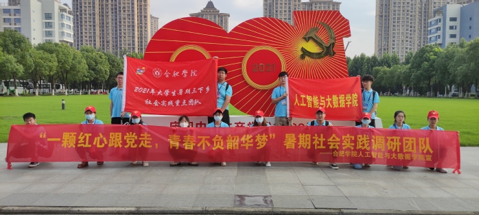 為慶祝中國(guó)共產(chǎn)黨百年華誕,讓時(shí)代新人在實(shí)踐創(chuàng)新中有所感悟、砥礪前行,合肥學(xué)院人工智能與大數(shù)據(jù)學(xué)院“點(diǎn)亮未來(lái)”三下鄉(xiāng)實(shí)踐團(tuán)隊(duì)于7月15日前往肥西縣三河古鎮(zhèn)二龍街社區(qū),以三河古鎮(zhèn)居民及游客為活動(dòng)開(kāi)展對(duì)象,采用聽(tīng)取匯報(bào)、問(wèn)卷調(diào)查、采訪交流、講座宣傳等多種方式,圍繞“一顆紅心跟黨走 青春不負(fù)韶華夢(mèng)”的主題,開(kāi)展為期七天的“三下鄉(xiāng)”社會(huì)實(shí)踐活動(dòng)。