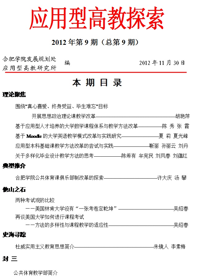 應用型高教探索9 期以公共課教學改革和課程考核方式改革為主題組稿,目錄如下,具體內容請查閱發展規劃處網站,并將您的寶貴意見或建議反饋至我處。