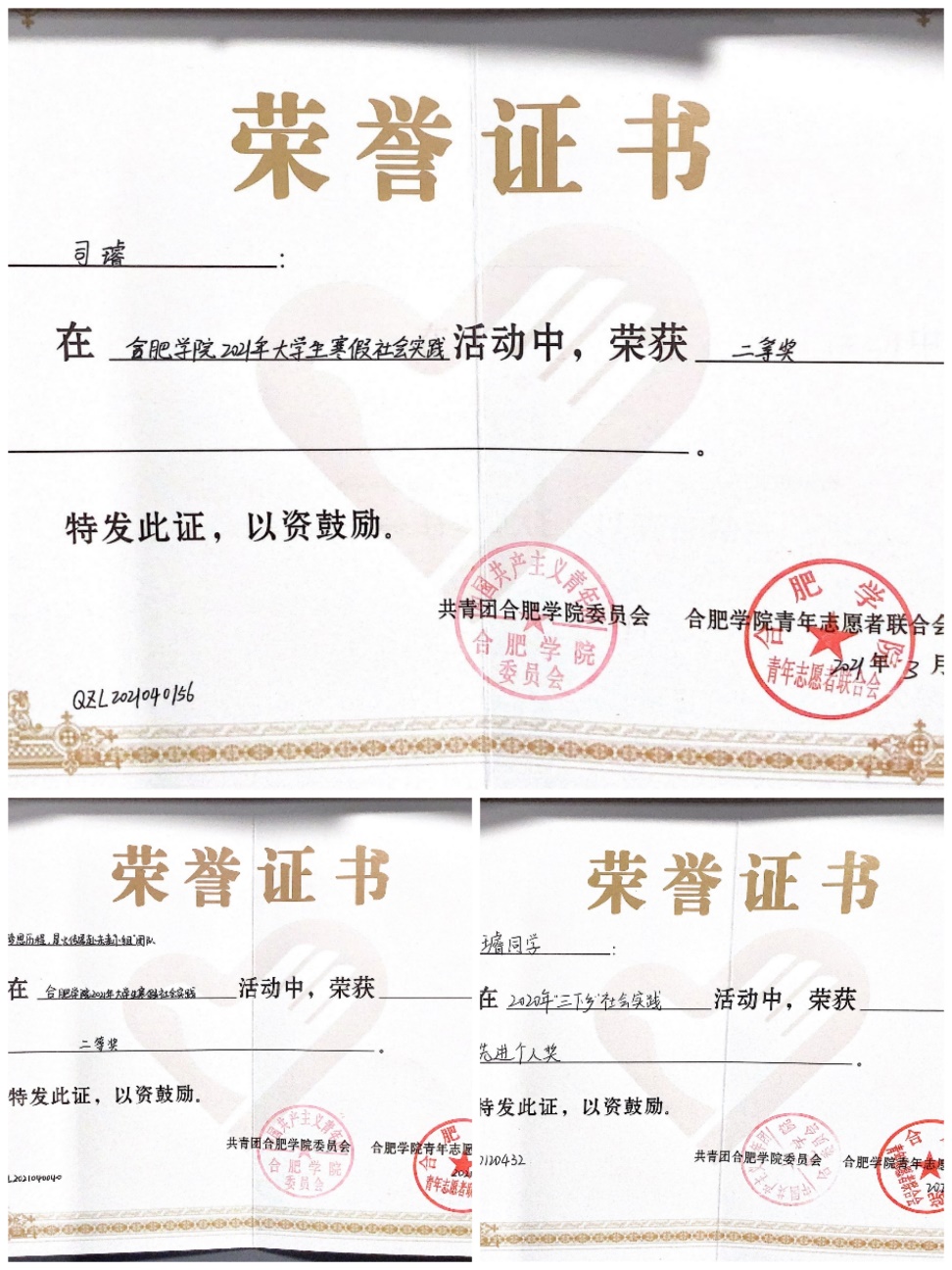 “寶劍鋒從磨礪出,梅花香自苦寒來”。各類科技學術競賽、“三下鄉”暑期實踐活動、學生會任職,這些各種各樣的經歷是司璿同學能力的體現,而無數的獎項證明則對是司璿同學能力的認可。