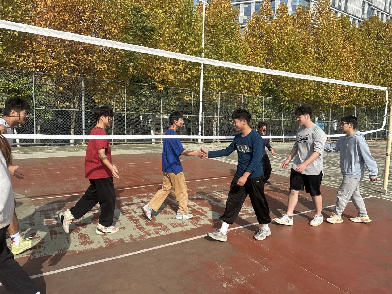 比賽結束后,兩隊隊員互相擊掌致意,感謝對手帶來的精彩比賽。在此次班級聯賽中,同學們都以飽滿的熱情投入到比賽中去,雙方選手充分發揮出敢打敢拼,永爭第一的進取精神,發揚出友誼第一,比賽第二和更高、更強的體育精神。