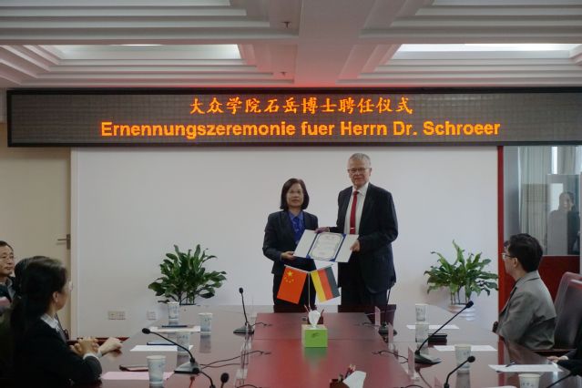 Die Hefei-Universit?t ernannte Herrn Dr. Klaus Schr?er zum Sonderprofessor im Volkswagen-Institut