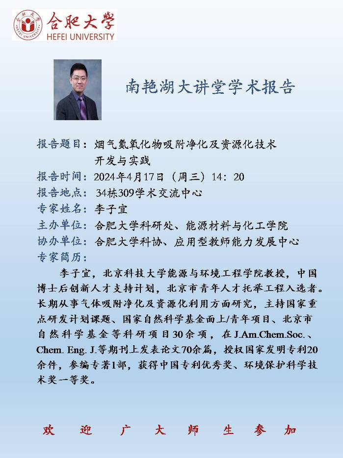 【南艷湖大講堂】煙氣氮氧化物吸附凈化及資源化技術(shù)開發(fā)與實(shí)踐