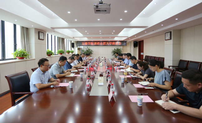 王曉峰對無錫學院的來訪表示熱烈歡迎,簡要介紹了合肥大學的發展歷程和辦學特色,分享了雙元制教育、人才培養模式創新與質量保障、國際化辦學的經驗做法和成效。 胡劍凌介紹了無錫學院的發展歷史、專業特色、發展目標等方面的情況,他表示希望兩校在人才培養、科研合作等領域開展更深層次的交流合作,共同探索高水平應用型大學發展道路。 會上,雙方圍繞學科專業建設、人才培養、政校企合作、學生工作等方面展開交流。