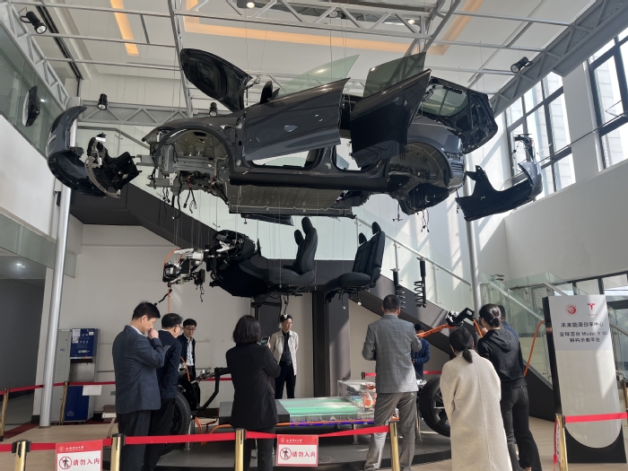 宋海峰介紹了安徽省應(yīng)用型本科高校聯(lián)盟概況和近期工作,說明了來訪目的,希望通過調(diào)研,加強與長三角地區(qū)應(yīng)用型本科高校的交流,推動聯(lián)盟高校微專業(yè)建設(shè)工作。 吳懋亮向聯(lián)盟高校調(diào)研組的到來表示歡迎,并介紹了上海電力大學(xué)現(xiàn)代產(chǎn)業(yè)學(xué)院建設(shè)工作。張傳林帶領(lǐng)聯(lián)盟高校調(diào)研組參觀了上海電力大學(xué)特斯拉產(chǎn)業(yè)學(xué)院,就特斯拉產(chǎn)業(yè)學(xué)院的新能源汽車微專業(yè)建設(shè)情況進行了詳細介紹。聯(lián)盟高校調(diào)研組認真聽取交流發(fā)言,雙方就現(xiàn)代產(chǎn)業(yè)學(xué)院及微專業(yè)建設(shè)相關(guān)問題進行了深入交流。