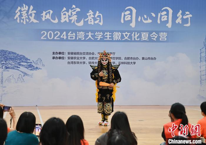 75日,在合肥大學(xué)南艷湖校區(qū),青年戲曲演員為臺(tái)灣高校師生表演變臉絕活。當(dāng)日,2024年皖臺(tái)青年交流活動(dòng)啟動(dòng)儀式暨臺(tái)灣大學(xué)生徽文化夏令營開營式在合肥舉行,來自臺(tái)灣的70余名青年師生走進(jìn)合肥大學(xué),體驗(yàn)傳統(tǒng)文化。