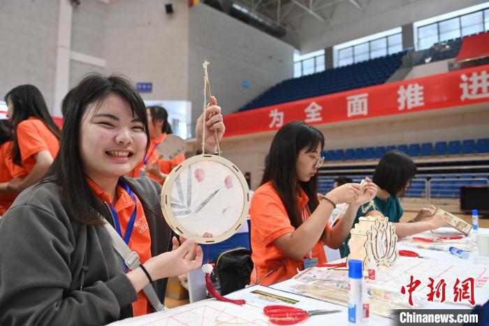 75日,在合肥大學(xué)南艷湖校區(qū),臺(tái)灣學(xué)生展示在自制的燈籠。當(dāng)日,2024年皖臺(tái)青年交流活動(dòng)啟動(dòng)儀式暨臺(tái)灣大學(xué)生徽文化夏令營開營式在合肥舉行,來自臺(tái)灣的70余名青年師生走進(jìn)合肥大學(xué),體驗(yàn)傳統(tǒng)文化。