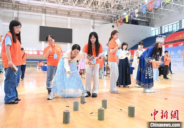 75日,在合肥大學(xué)南艷湖校區(qū),臺(tái)灣學(xué)生在玩套圈游戲。當(dāng)日,2024年皖臺(tái)青年交流活動(dòng)啟動(dòng)儀式暨臺(tái)灣大學(xué)生徽文化夏令營開營式在合肥舉行,來自臺(tái)灣的70余名青年師生走進(jìn)合肥大學(xué),體驗(yàn)傳統(tǒng)文化。