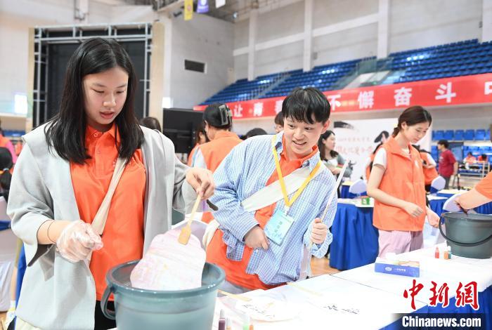 75日,在合肥大學(xué)南艷湖校區(qū),臺(tái)灣學(xué)生在制作漆扇。當(dāng)日,2024年皖臺(tái)青年交流活動(dòng)啟動(dòng)儀式暨臺(tái)灣大學(xué)生徽文化夏令營開營式在合肥舉行,來自臺(tái)灣的70余名青年師生走進(jìn)合肥大學(xué),體驗(yàn)傳統(tǒng)文化。