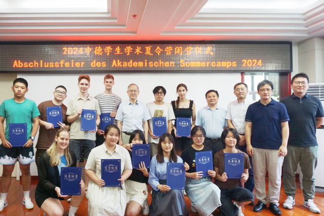 王其東給參加本次夏令營的中德學生頒發(fā)結業(yè)證書,對成功舉辦給予了高度評價,期望同學們能夠珍視這段寶貴的經(jīng)歷,將所學所獲轉化為推動兩國友誼與合作的積極力量。