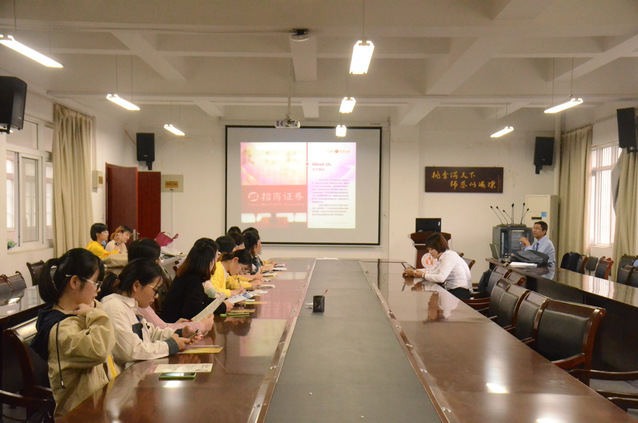 2020年9月22日,招商證券2020-2021年度校園招聘會召開,市場部經理門伍龍向同學們介紹了公司的發展歷程、公司取得的成就、未來規劃以及員工的薪資待遇等。同學們從多方面發起提問,門經理耐心的回答同學們的問題。