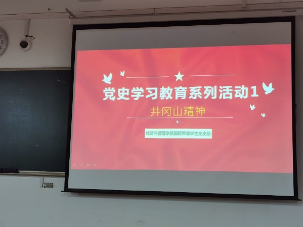 為慶祝中國(guó)共產(chǎn)黨建黨100周年,深入學(xué)習(xí)黨的光輝歷史和偉大精神,重溫中國(guó)共產(chǎn)黨帶領(lǐng)人民謀幸福、為中華民族謀復(fù)興的艱辛探索歷程,堅(jiān)定黨員理想信念,經(jīng)濟(jì)與管理學(xué)院國(guó)際貿(mào)易學(xué)生黨支部于415日晚九十節(jié)課在一期博學(xué)樓B307教室舉辦學(xué)生黨員黨史學(xué)習(xí)教育系列活動(dòng)一·精神學(xué)習(xí)·(二)井岡山精神。