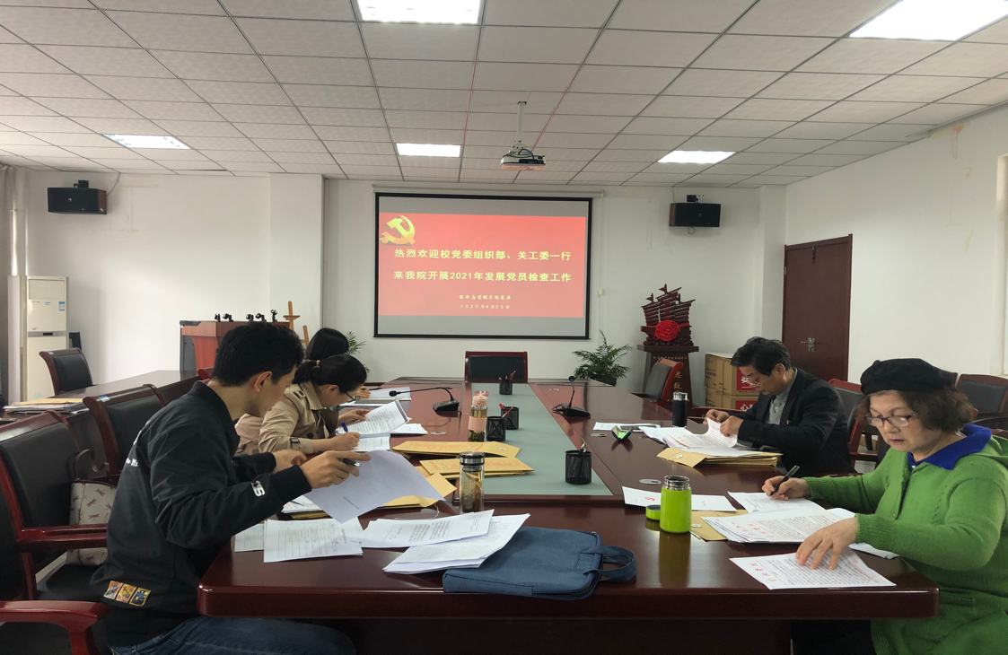 首先,由我院匯報了發展黨員工作的自查情況,主要介紹了本次發展黨員自查工作亮點、存在問題和下一步工作思路。隨后,第三檢查組實地查看我院黨組織發展黨員材料,對發展黨員材料進行規范檢查。檢查內容包括入黨申請書、思想匯報、考察報告的書寫是否規范、次數是否合理,時間邏輯是否一致,以及發展黨員工作的流程、發展對象入黨材料是否齊全、是否存在缺失、遺漏等問題。