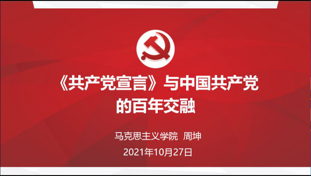 1027日,經(jīng)濟與管理學(xué)院第五期全體入黨積極分子通過線上方式參與第七課《共產(chǎn)黨宣言與中國共產(chǎn)黨的百年交融》的學(xué)習(xí)。本次黨課由馬克思主義學(xué)院周坤老師主講。