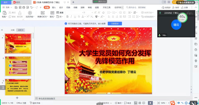為教育引導入黨積極分子端正入黨動機、發揮先鋒模范作用、當好廣大學生的領頭羊,2022年11月30日,經濟與管理學院第七期入黨積極分子培訓班線上第三課《大學生黨員如何充分發揮先鋒模范作用》順利開講。本次黨課由校黨委巡察辦主任丁增云老師主講。