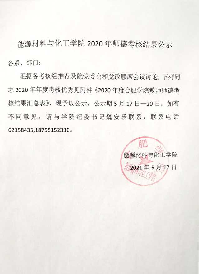 | 2020年度合肥學院教師師德考核結果匯總表 |