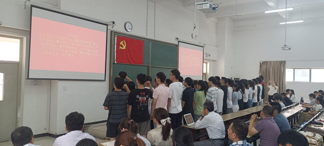 莊嚴的國歌聲拉開了本次大會的序幕,魏安樂代表學院黨委宣讀新發展黨員名單,預備黨員們一同面對鮮紅的黨旗,右手舉拳,神情肅穆,聲音洪亮,莊嚴宣誓,同志們以擲地有聲的錚錚誓言,表達了一名共產黨員崇高的理想信念和價值追求。張文龍代表全體新黨員發言表示,全體新黨員同志必將終生銘記入黨誓詞,身體力行,在實踐中加強自身黨性修養,在工作中增強自身才干,自立、自強、自省,精勤求學,刻苦鉆研,忠誠于黨,服務人民,不負黨和時代賦予的崇高使命。