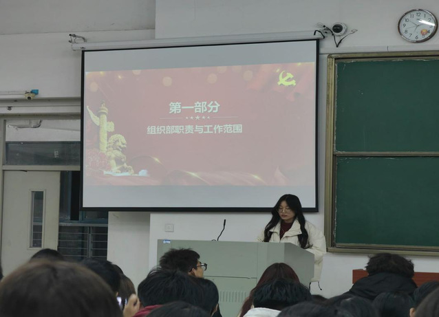 在同學們和老師入座后,例會正式開始。學生會各部門部長對本學期的工作計劃進行了詳細介紹。首先進行匯報的是辦公室部長,他先說明了辦公室上學期的工作內容,然后再說明本學期的工作內容以及需要其他部門相互配合的工作環節。隨后便是各個部長上臺匯報他部門的工作總結,并提出了很多本學期所要舉辦的活動和日程安排。