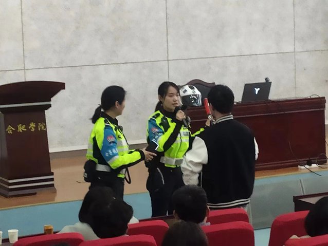 2024314午,“守法禮讓,文明出行”交通安全宣講活動于圖書館報告廳B廳舉行本次活動由合肥大學學生處、保衛處、校工會、宣傳部、團委、后勤集團聯合舉辦,活動邀請合肥市交警支隊經開大隊民警方勇和鐵騎警花錢小四、章珠麗三名警員進行宣講,我校部分師生到場學習。