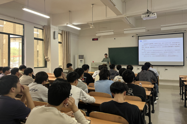 宣講會上,姚軍老師首先介紹了2025年合肥大學城建學院碩士研究生招生的相關信息,包括專業招生目錄、考試科目、擬招生計劃等,并結合人才培養方案向各位同學說明了本院目前的研究生培養方式、師資力量和科研環境。隨后,祝磊副院長對城建學院研究生培養的優勢和特色進行了補充說明,建議有意向報考合肥大學的同學明確自己的目標和方向,合理規劃備考時間。最后,各位老師就同學們提出的專業課備考、復試準備、未來就業前景等問題進行細致地解答。