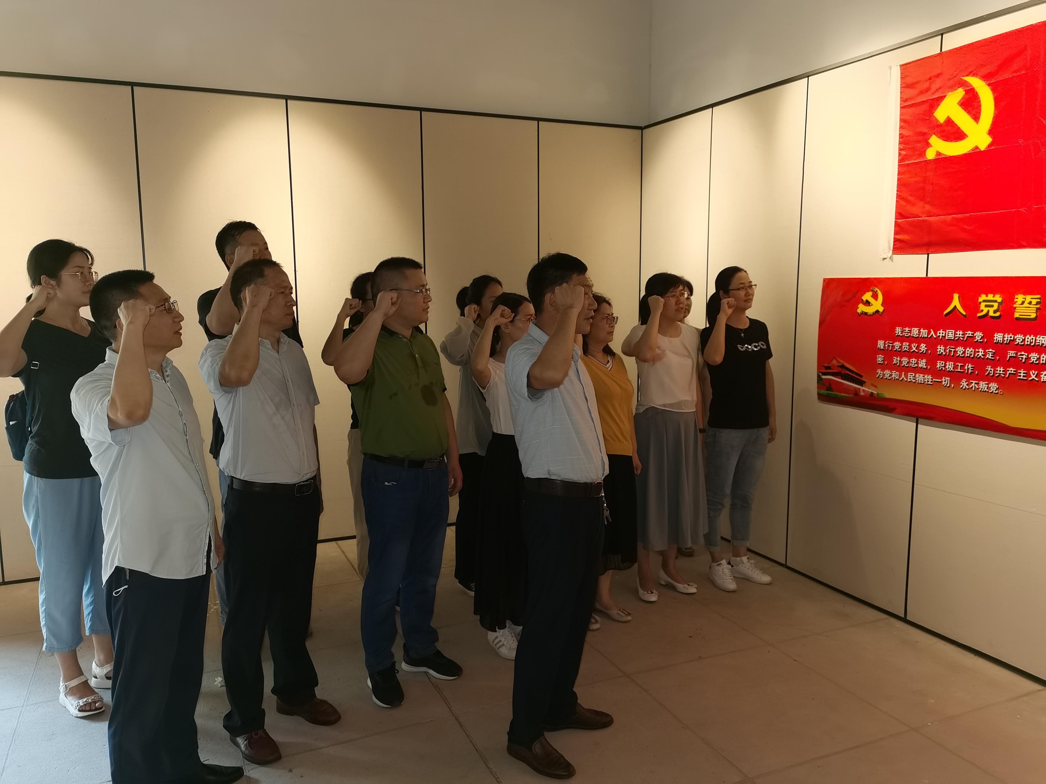 參觀結束后,全體黨員在胡曉軍書記的帶領下,在紀念館內所有黨員面向鮮紅的黨旗,整齊地列隊而戰,鄭重地舉起右拳,莊嚴宣誓,重溫了入黨誓詞。