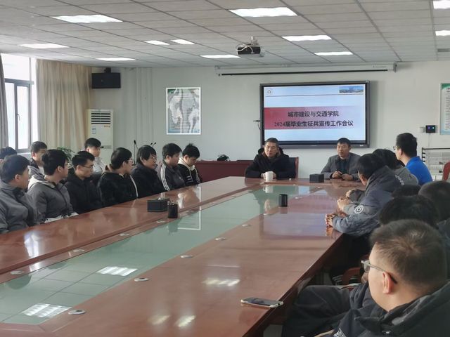 2023121日中午在413樓大會議室,城建學院召開2024屆畢業生征兵宣傳工作會議,城建學院黨委書記張永軍、畢業班輔導員以及畢業班的本科生、研究生參加了會議。張書記在會上把最新的大學生征兵政策向同學們作了詳細的解讀。