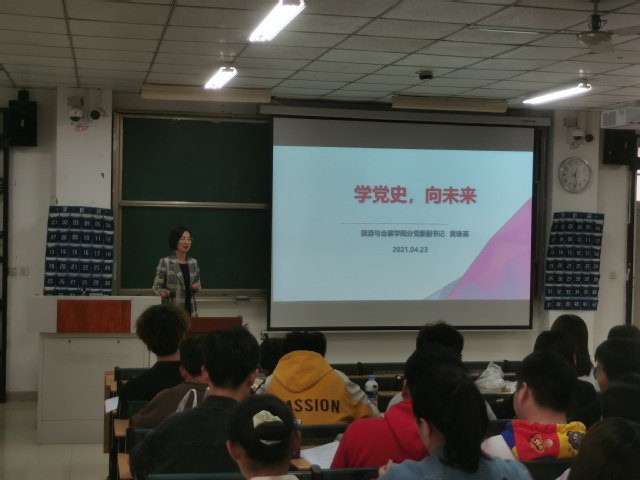 4月23日,旅游與會展學院第十九期入黨積極分子培訓班第五次授課在博學樓A座107教室順利開展。本次授課以“學黨史,向未來”為主題,由旅游與會展學院黨委副書記黃雄英主講。