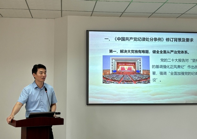 孫靜宇介紹了條例的修訂背景,他引經(jīng)據(jù)典,旁征博引,用生動的語言解讀了《中國共產(chǎn)黨紀律處分條例》總則和分則的重點內(nèi)容和深刻內(nèi)涵,使每一位在座的黨員都深受觸動,收獲頗豐。