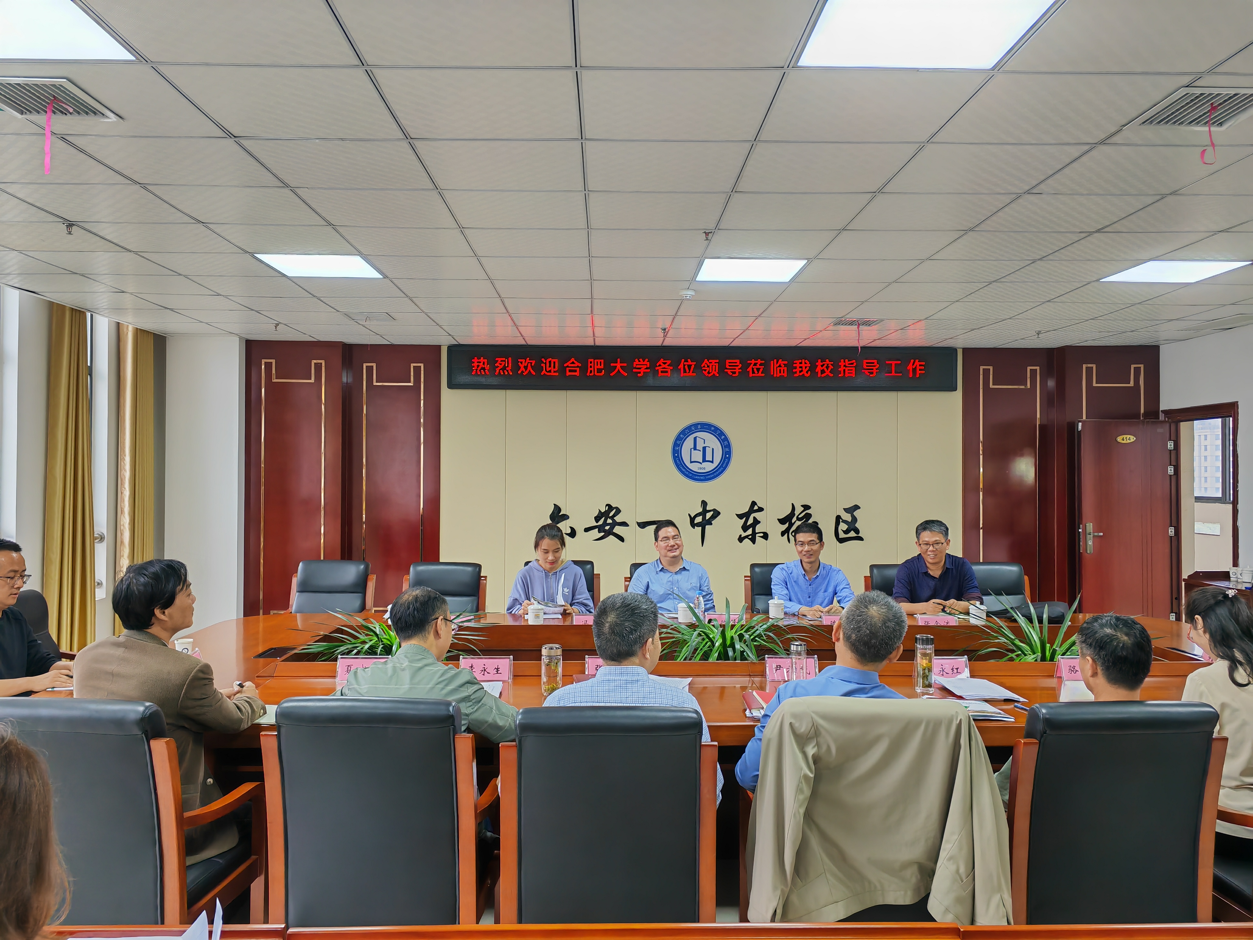 六安一中東校區阮班鋒對六安一中東校區近年來為合肥大學輸送了大批優秀學生表示衷心感謝并邀請東校區的師生到合肥大學進行參觀交流。陳俊介紹了我院辦學特色、就業前景和2024年招生計劃等情況。尹孝成校長隨后簡要介紹了東校區的發展歷史、辦學理念和高考升學率等基本情況,表示將進一步加強與大學教育的良性互動,積極探索中學教育與大學教育銜接貫通的路徑,共同搭建平臺,協同育人。座談會后,雙方舉行了合肥大學和六安一中東校區“優質生源基地”授牌儀式。