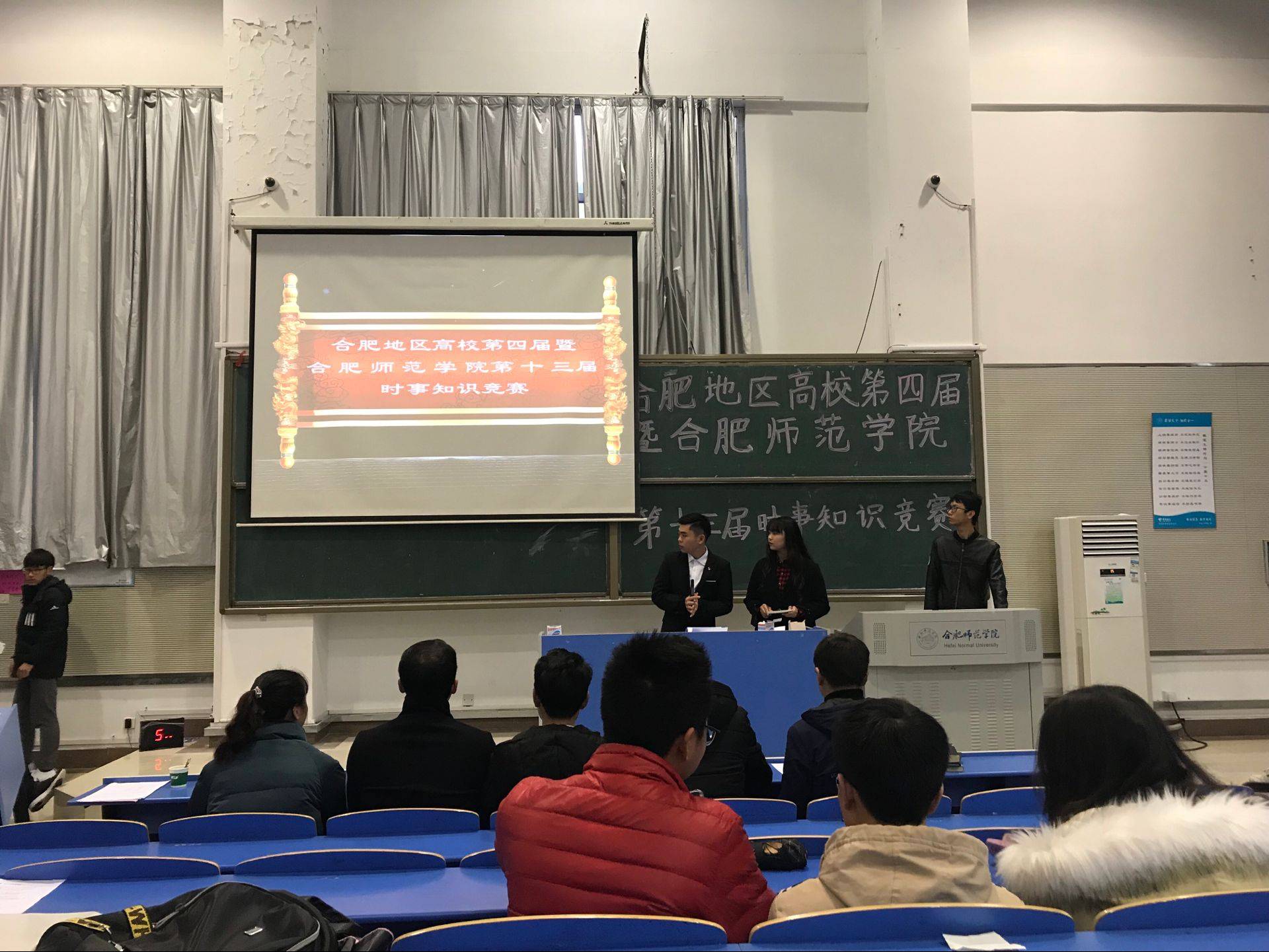 20171223,“合肥地區高校第三屆時事知識競賽暨黨的十九大知識競賽”在合肥師范學院舉行。來自安徽大學、安徽農業大學、合肥學院、合肥師范學院、安徽醫科大學等10多所高校理論社團的大學生參加了此次競賽。