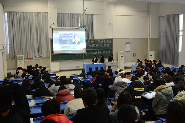 20181222上午,合肥地區高校第四屆暨合肥師范學院第十三屆時事知識競賽在合肥師范學院錦繡校區逸夫樓舉行。安徽大學、安徽農業大學、合肥學院、安徽三聯學院、安徽職業技術學院、合肥師范學院等6所高校思想理論類學生社團代表隊參加比賽,合肥師范學院團委負責人、各二級學院學生代表近300人到場觀賽。